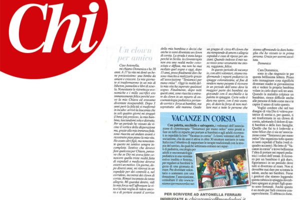 Benvenuto nel nostro spazio di condivisione, dove ogni sorriso diventa una storia e ogni gesto di gentilezza si trasforma in un’opera d’arte. Scopri di più sulla magia della Clownterapia e sul volontariato. Lasciati ispirare dalle esperienze toccanti dei nostri clown e dai volti raggianti di coloro che ricevono la nostra visita. Ogni articolo è un invito a guardare il mondo da una prospettiva più colorata e gioiosa
